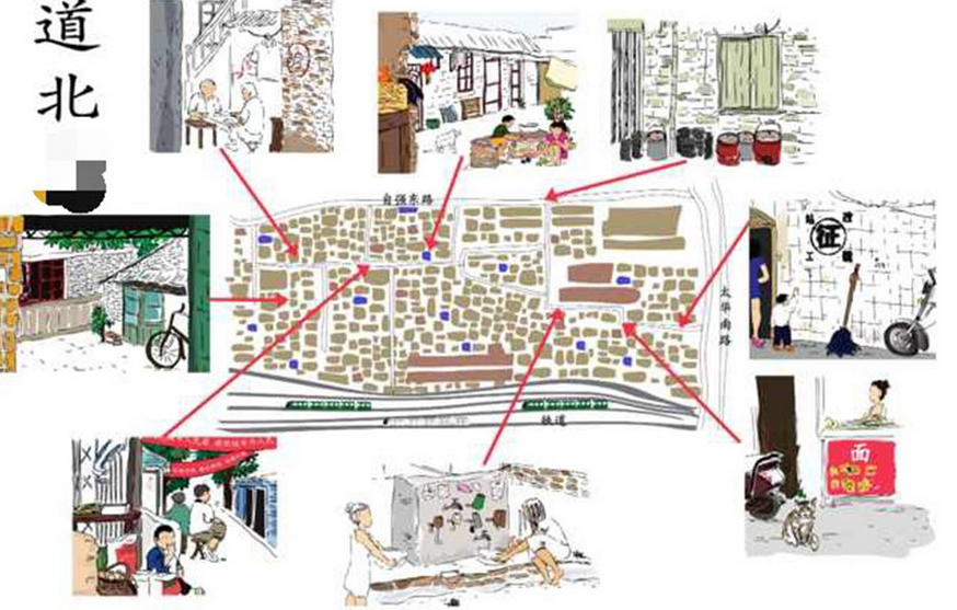 法國插畫師美珊女士在聽說了“道北人”的故事以后,對他們勇敢、勤勞和不向命運低頭的精神深表敬佩。5月24日,在參觀了“道北村”后,美珊從她的視角繪制了幾幅“道北人”日常生活的場景,向“道北人”致敬。