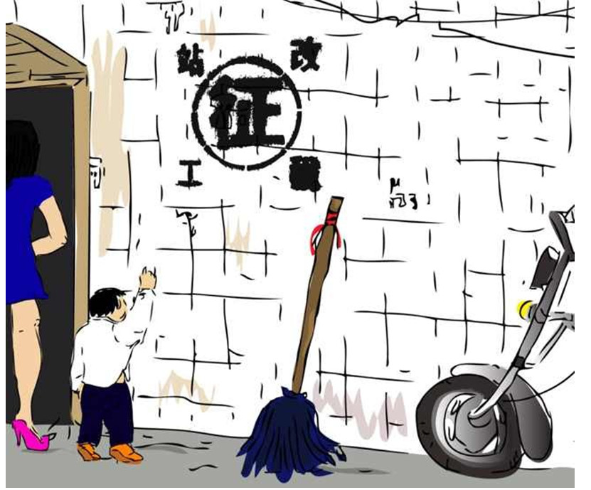 小朋友看到自家墻上的“征”字,好奇地問:“媽媽,這是什么意思啊”